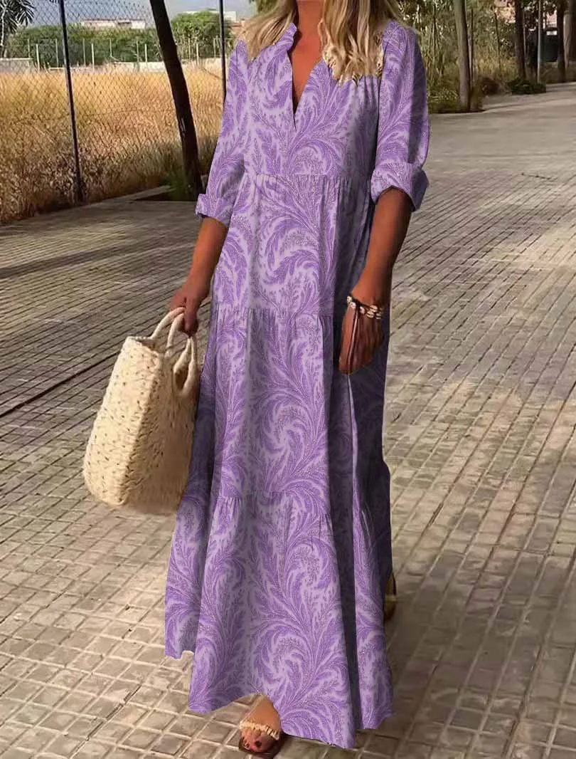 Women Texture, Purple DZDN0394 SPU Printed Long Sleeve V-neck Maxi Dress